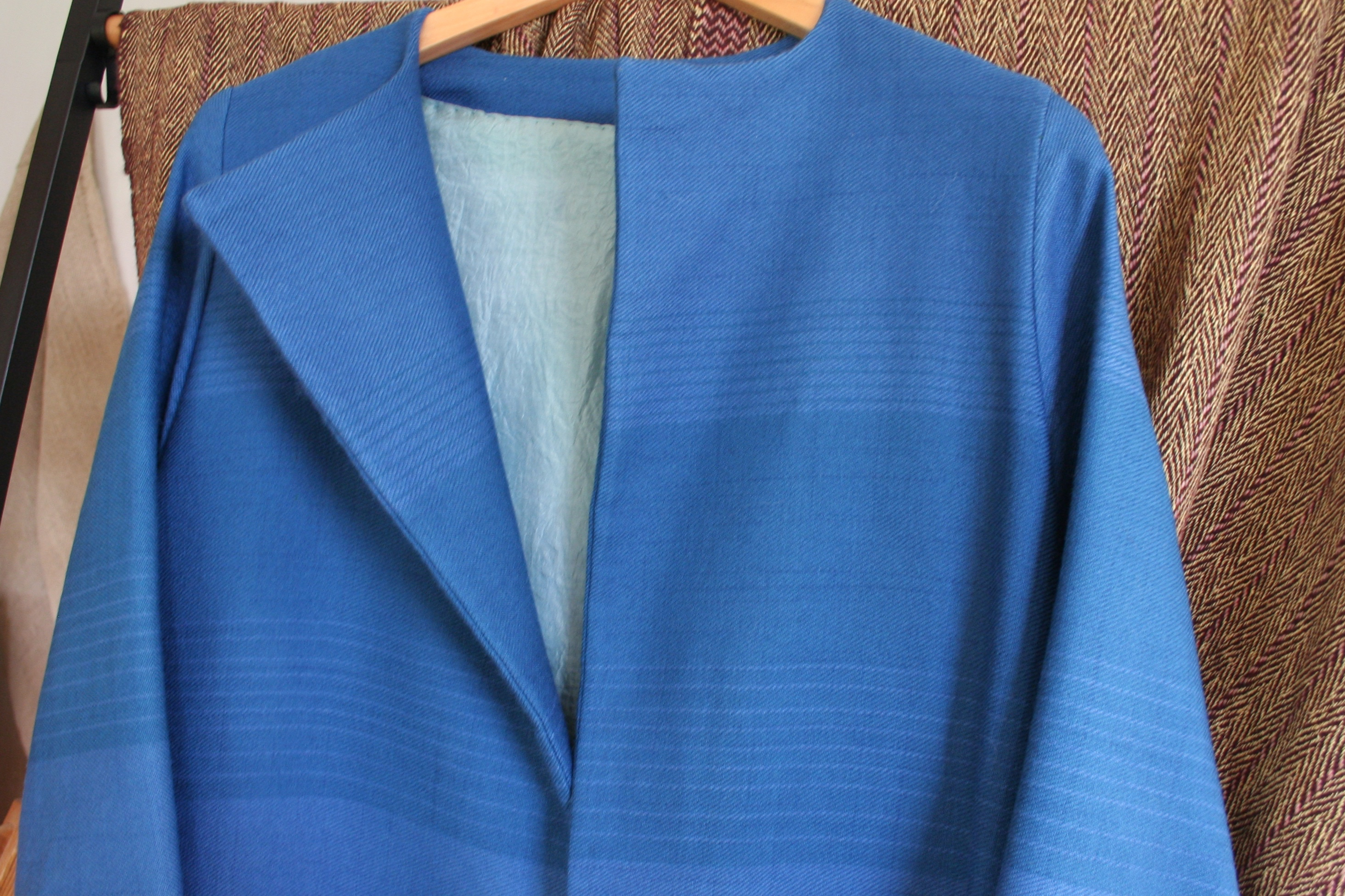 Efter at stoffet er færdig vævet, bliver det vasket og damp strøget. Stoffet til Opera Frakken blev også over-farvet med den naturlige indigo plante. Foret er af silke som også er blevet farvet med indigo planten. Det er medvirkende til Opera Frakkens helhedsudtryk. Der er en theory om at synthetiske farver kun blivet set som en enkelt farve mens en plantefarve indeholder flere bestanddele der gør at øje opfanger et større spectrum af farver.
